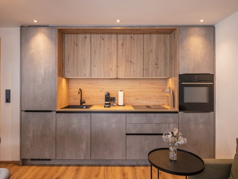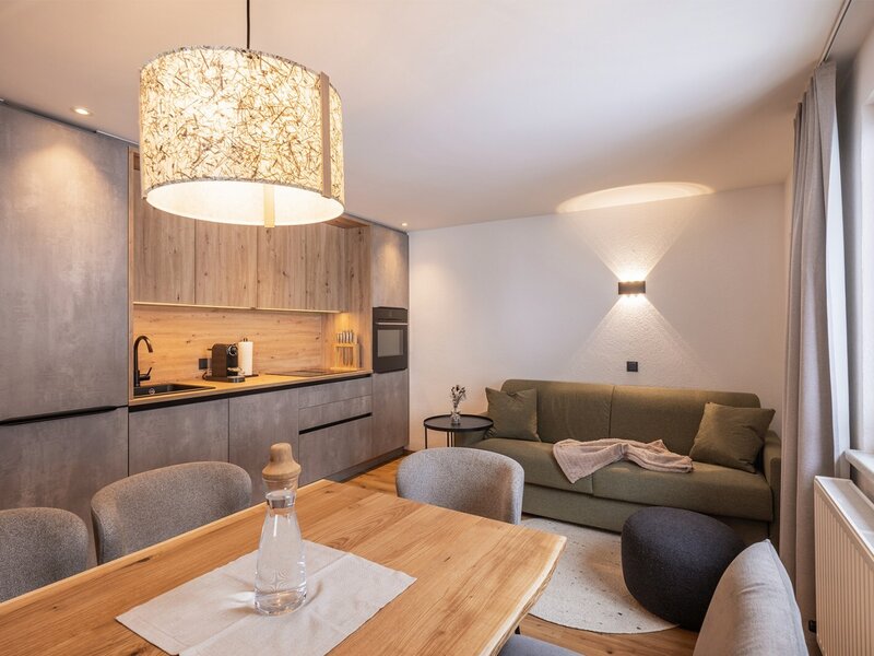 Ein Schlafzimmer mit Couch, eine Ausziehcouch im Wohnzimmer und ein Badezimmer mit separatem WC sorgen für den extra Komfort für bis zu 5 Personen. Genieße den Sonnenuntergang und die exklusive Aussicht auf die Berglandschaft auf dem geräumigen Balkon.
