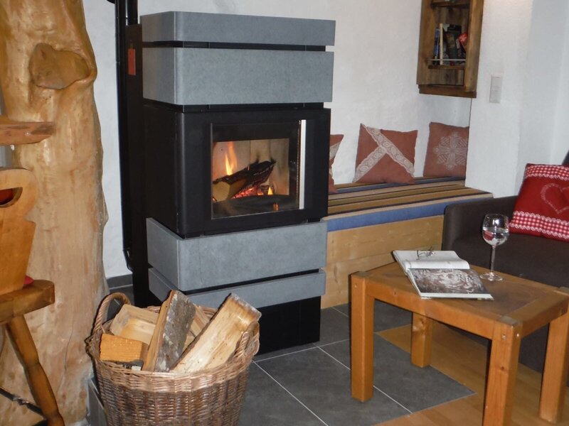 Die Hütte bietet sämtlichen Komfort wie Strom, Warmwasser und Gasheizung. In der Wohnecke mit Kamin kann man sich wieder aufwärmen, nach einem Tag im Schnee.