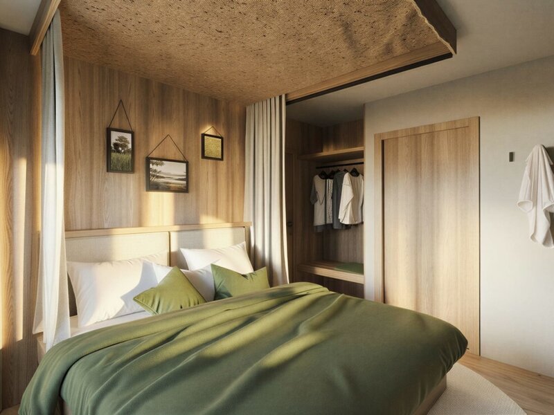 Unsere Gräfin steht für Struktur und Balance sowie innere Klarheit. Denn wenn man innerlich klar ist, kann man die richtigen Entscheidungen treffen. Ein Rückzugsort für Menschen, die in der Disziplin ihre Freiheit finden, ausgestattet mit einer fabelhaften Panorama-Aussicht, einem Schlafzimmer, einer Wohnküche sowie Badezimmer und separatem WC.