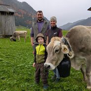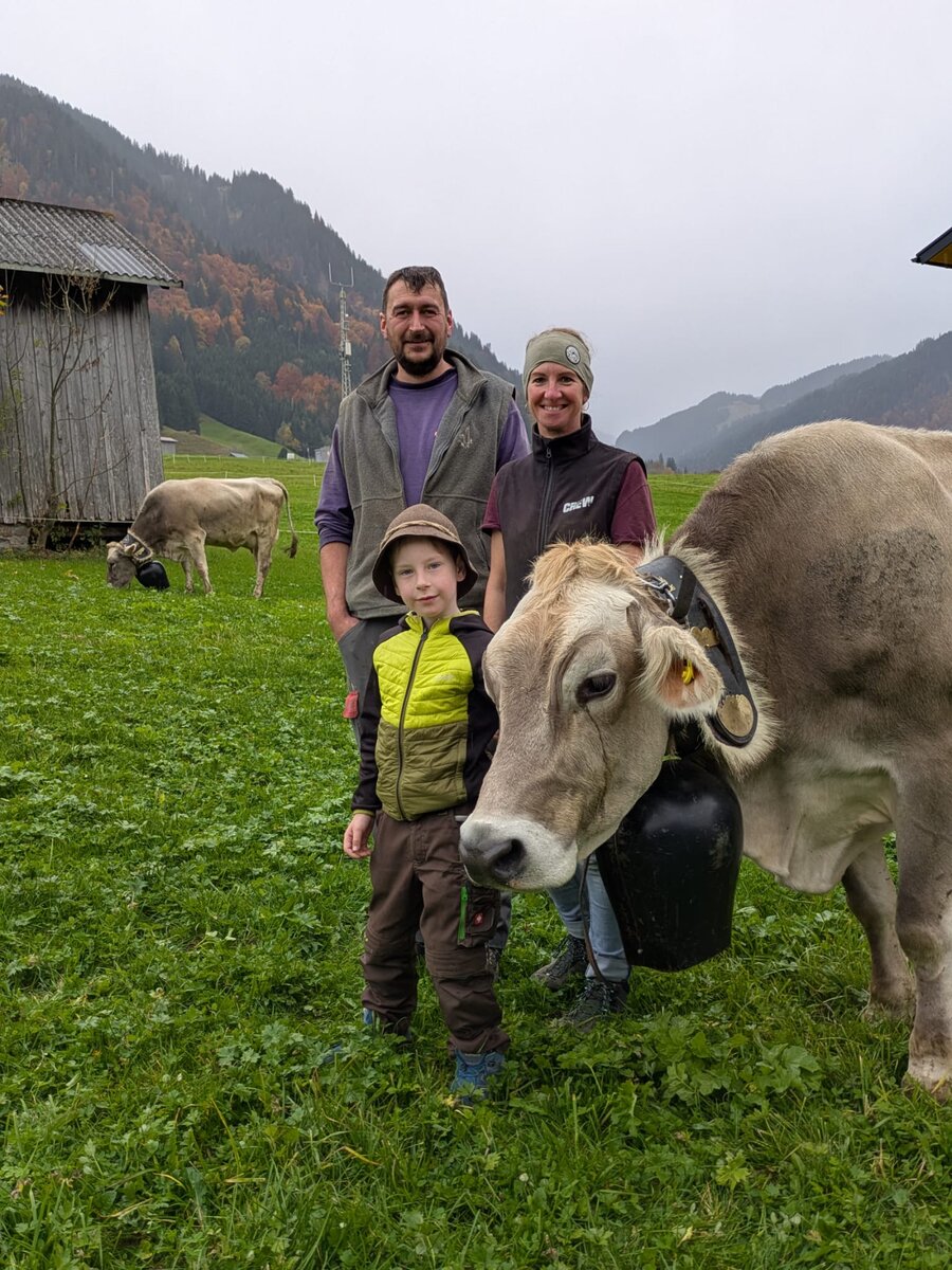 Von Ende April bis Mitte Oktober genießen unsere Kühe die Zeit in unserem Sommerstall. Dieser Stall ist von uns 20 Gehminuten entfernt und liegt direkt beim Radweg Richtung Mellau. Das Jungvieh ist im Sommer auf der Alpe und genießt die Bergluft in der Höhe.