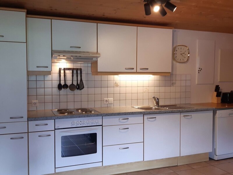 Die gemütliche Kanisfluhwohnung im 2.Stock (50m²) mit Dachschräge hat einen schönen Blick zur imposanten Kanisfluh. Das Schlafzimmer verfügt über ein Familien-Bodenbett mit 3m Breite. Die Kanisfluhwohnung kann durch das separate Dachspitzzimmer mit Blick zum Hirschberg oder dem Komfortdoppelzimmer erweitert werden. Das Badezimmer verfügt über eine Dusche, WC und Haarföhn.