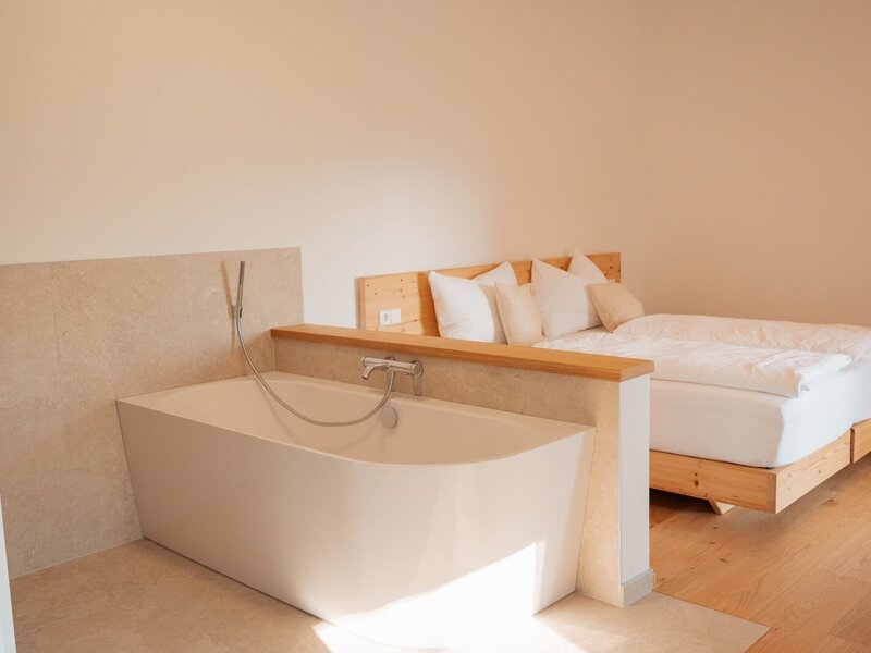 Unsere neuen, liebevoll gestalteten Doppelzimmer sowie zwei großzügige Juniorsuiten mit Küche und Badewanne bieten modernen Komfort im historischen Ambiente – perfekt für Paare, Familien oder Ruhesuchende.