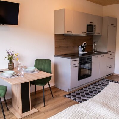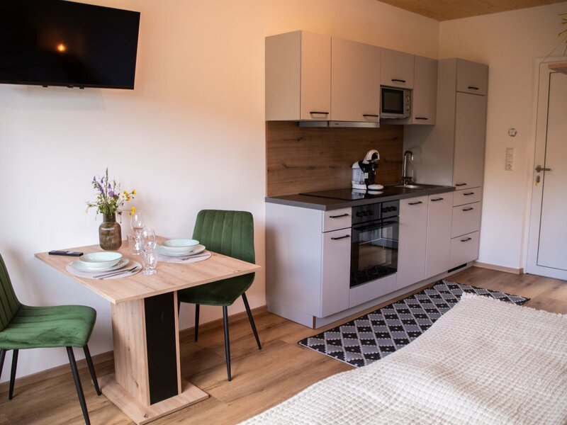 Das neu renovierte Apartement befindet sich im Erdgeschoss des Ferienhauses. Es beinhaltet eine Garderobe, Badezimmer mit Dusche und WC, voll ausgestattete Küche mit Ess-Wohnraum und ein Schlafzimmer mit Doppelbett.
