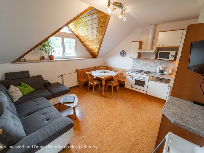 Komfortzimmer und Ferienwohnungen mit Naturholzmöbeln, Aufenthaltsraum mit Sat-TV und Küche samt Gästekühlschrank laden zum Wohlfühlen ein.