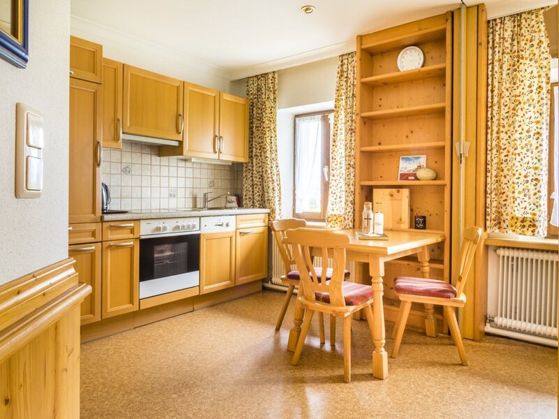 - Küche mit Cerankochfeld, Kühlschrank, Mikrowelle, Wasserkocher