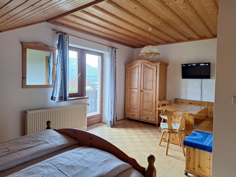 Zur weiteren Ausstattung gehören ein Fernseher, und auf Anfrage stellen wir gerne ein Kinderbett zur Verfügung.