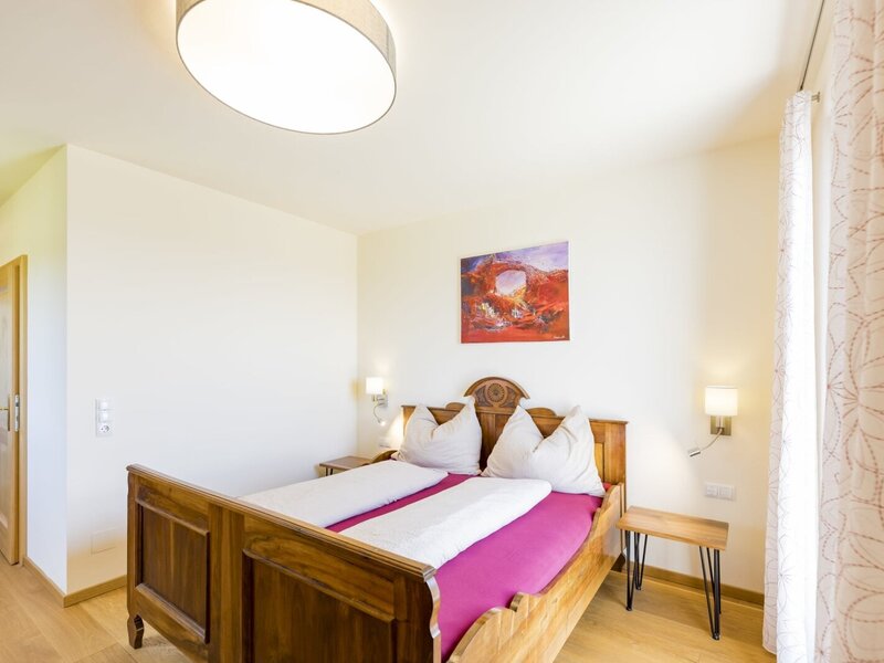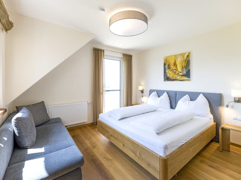 Genießen Sie dieses liebevoll eingerichtete 25 m² Doppelzimmer inkl. kleiner Terrasse mit einer traumhaften Aussicht. Hier können Sie in die Ferne bis nach Slowenien blicken und dabei zur Ruhe finden.