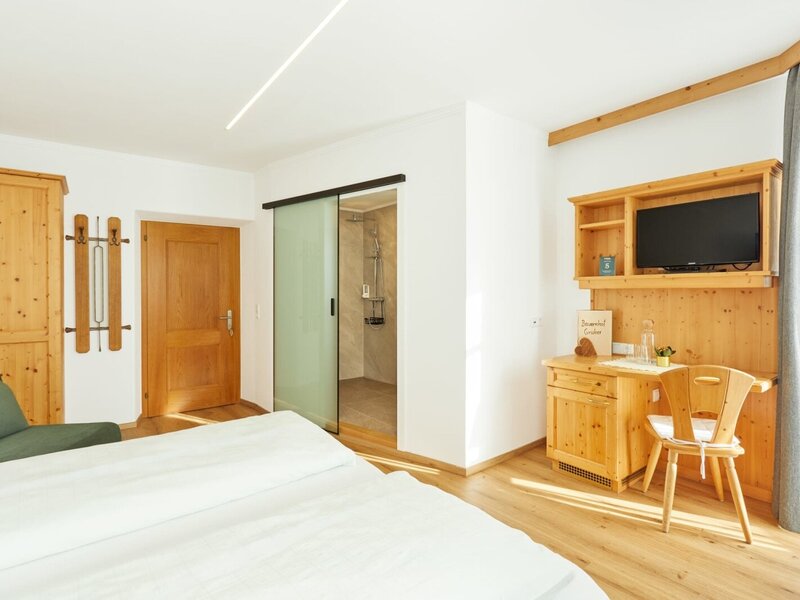 Unser neu renoviertes, gemütliches Doppelzimmer Sonnstein im Bauernhaus, empfängt Sie auf großzügigen 20 m² mit einer behaglichen Atmosphäre. Genießen Sie den Komfort eines neuen Badezimmers mit Walk in Regendusche und WC. Vom sonnigen Südbalkon aus eröffnet sich Ihnen eine herrliche Aussicht auf die umliegende Berglandschaft – perfekt für entspannte Stunden. Zur Ausstattung gehören ein komfortables Kingsize-Bett, Sat-TV, kostenfreies WLAN, ein Kühlschrank, Pflegeprodukte und ein Haarföhn. Als Nichtraucherzimmer garantiert es frische Luft und Wohlbefinden. Ihr Aufenthalt beinhaltet ein reichhaltiges Frühstücksbuffet mit köstlichen, hofeigenen Produkten, die Ihren Tag perfekt beginnen lassen.