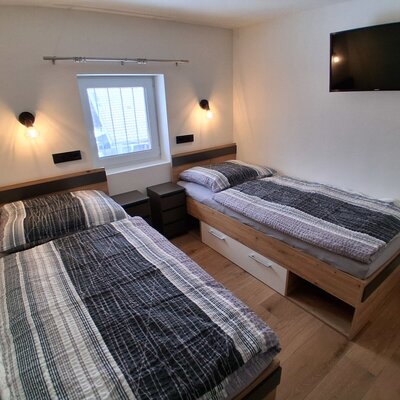 Willkommen in unserem geräumigen, 50 m² großen Appartment, das den idealen Rückzugsort für Familien oder kleine Gruppen bietet. Genießt den atemberaubendem Blick auf die umliegende Berglandschaft, direkt vom privaten Balkon. Dieses Apartment verfügt über zwei separate Schlafzimmer: eines mit einem komfortablen Doppelbett und ein weiteres mit zwei Einzelbetten, perfekt für bis zu 4 Personen. Ein Gitterbett kann auf Anfrage bereitgestellt werden. Die voll ausgestattete Küche lässt keine Wünsche offen und lädt zum Selbstkochen ein. Das Badezimmer ist mit Dusche und WC ausgestattet.