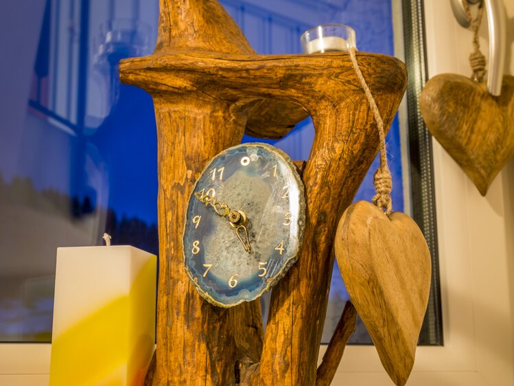 Seither kann Dietmar aus dem Vollen schöpfen. Er verwandelt vor allem Fichten- und Ahornwurzeln in kleine, individuelle Kunstwerke. Es ist die Einzigartigkeit jeder Wurzel, die ihn besonders fasziniert. „Die Wurzel kann ich nicht suchen, sie kommt zu mir“, erklärt er. Und dann kommen die Ideen. Für große und kleine Dekoelemente für den Innen- oder Außenbereich, Uhren, Kerzenständer, Vogelhäuschen oder Wegweiser. „Die Natur bietet uns so viel, wir müssen nur die Augen aufmachen“, erzählt „da Wurzelschnitzer“, wie man ihn im Ort gern nennt.