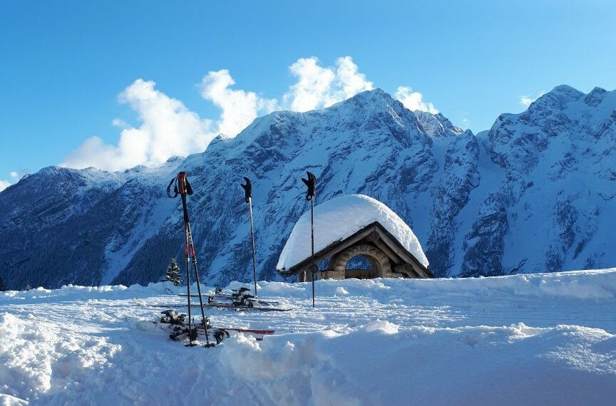 "Tipp: Achtet bei der Wahl der Skitourenroute immer auf Schnee-Sicherheit und Lawinenwarnstufen, bevor ihr los startet. Falls ihr die Umgebung nicht kennt, erkundigt euch im Vorfeld bei euren Gastgebern in der Unterkunft, im Tourismusverband oder beim Alpenverein."