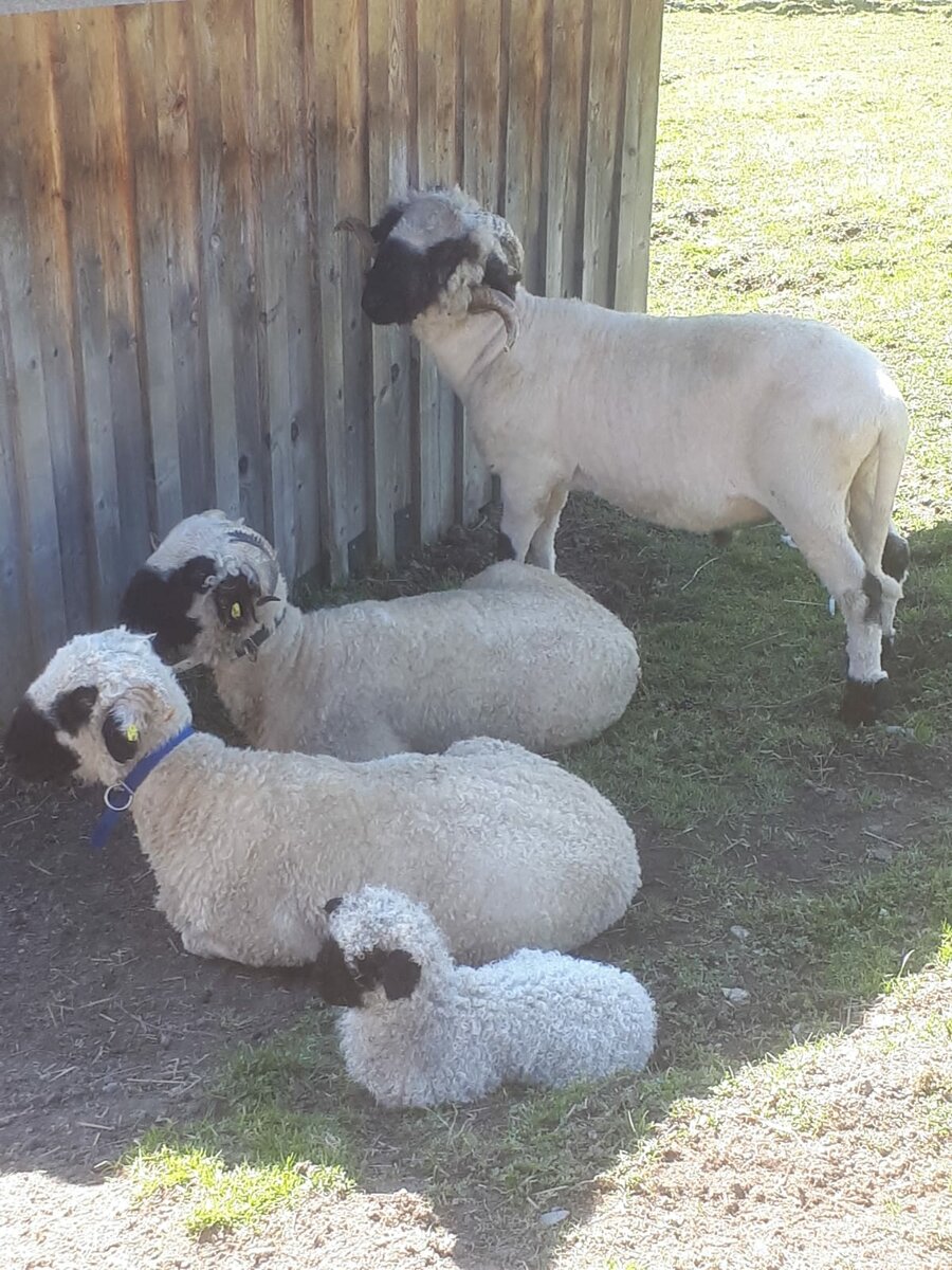 Diese Schafrasse fällt auf, durch ihre charakteristische schwarze Färbung an Nase, Augen, Ohren, Vorderknien, Knöcheln und Füssen, im ansonsten weißen Fell. Klein sind sie, sie werden nicht größer als 70 bis 83 cm und tragen bis zu 3 bis 5 Kg Wolle mit sich umher. Scheren tut Hans die Schafe aber nicht selbst, da kommt jemand.