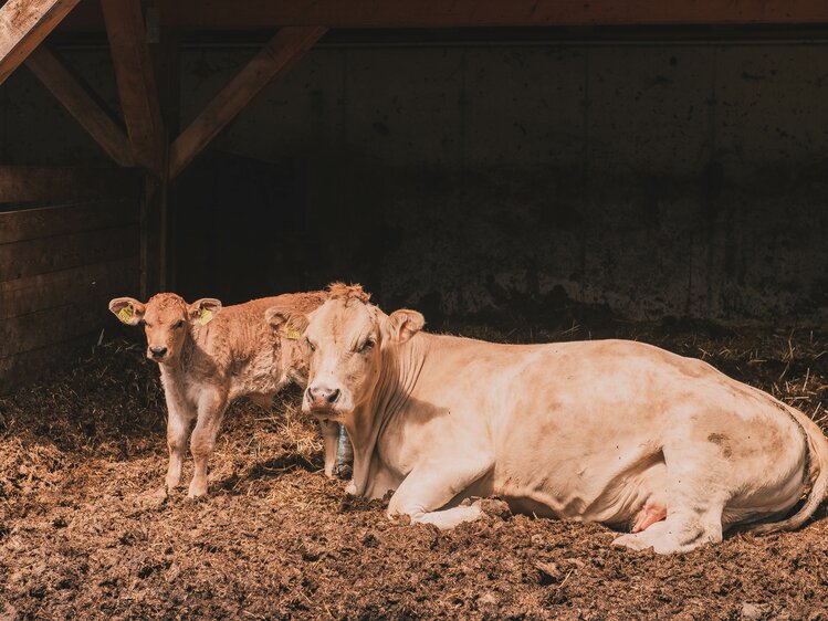 Am Bauernhof Priegl leben viele verschiedene Arten: Katzen, Hühner, Schafe, Enten, Ponys und Kühe. Letztere machen den Großteil aus und stellen neben dem Tourismus und der Forstwirtschaft das dritte Standbein des Hofes dar. „Wir halten in naturnaher Mutterkuh-Haltung das Murbodner Rind“, erklärt Alois. Diese Rasse gilt als besonders robust und ist für seine Widerstandsfähigkeit und Langlebigkeit bekannt. Die hervorragende Fleischqualität zeichnet sich durch eine zarte Faserung mit entsprechender Marmorierung aus und wird ausschließlich in der Direktvermarktung an die zahlreichen Fixabnehmer verkauft. „Ich kenne viele Kunden, die rein nur unser Fleisch essen. Am Hof wird für unsere Gäste täglich frisch gekocht und auch unsere drei Töchter sind von uns sogenannte Außer-Haus-Vegetarier.“